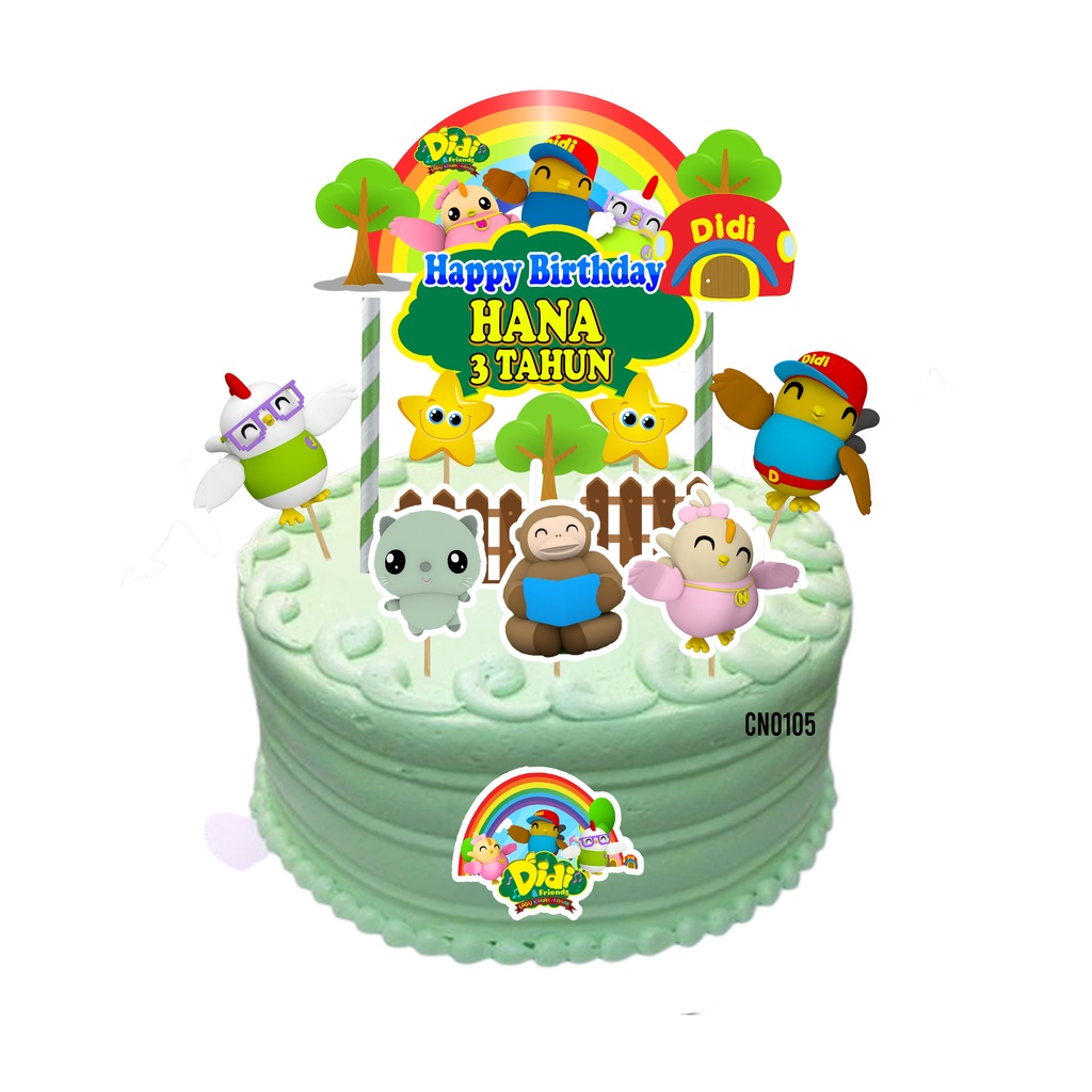 custom name happy birthday cake topper didi and friends decoration set party accessories banner hiasan kek design 4.